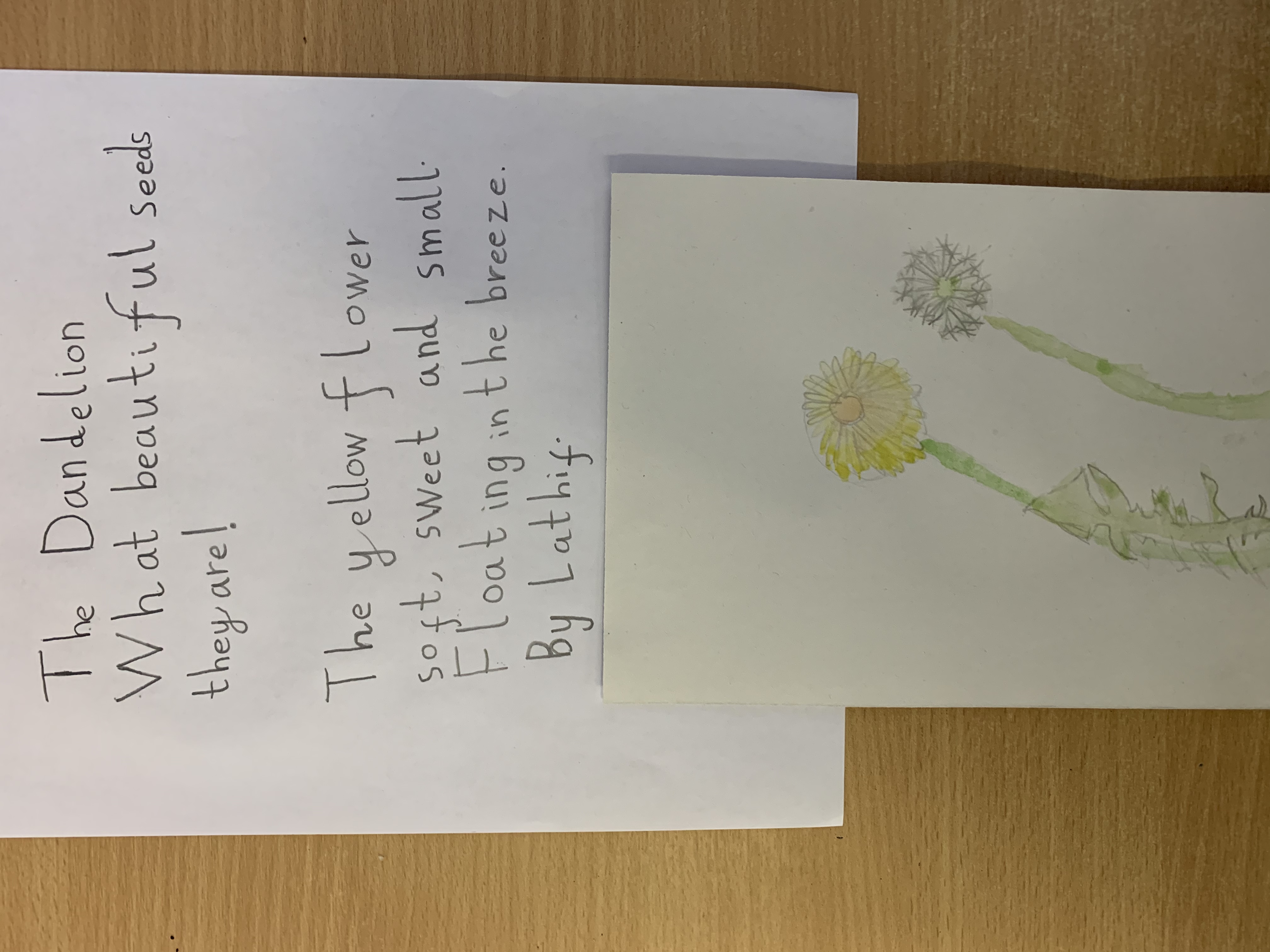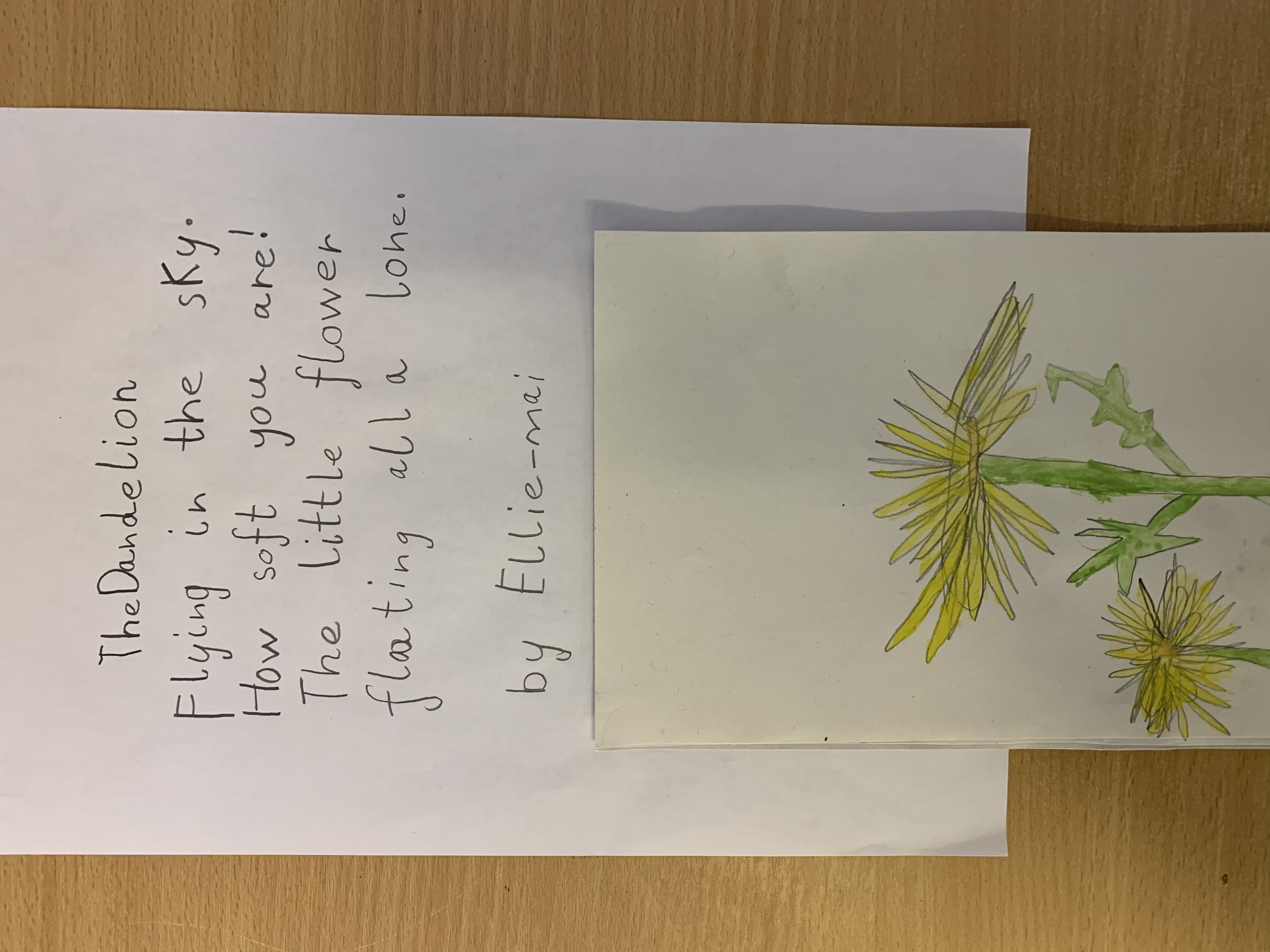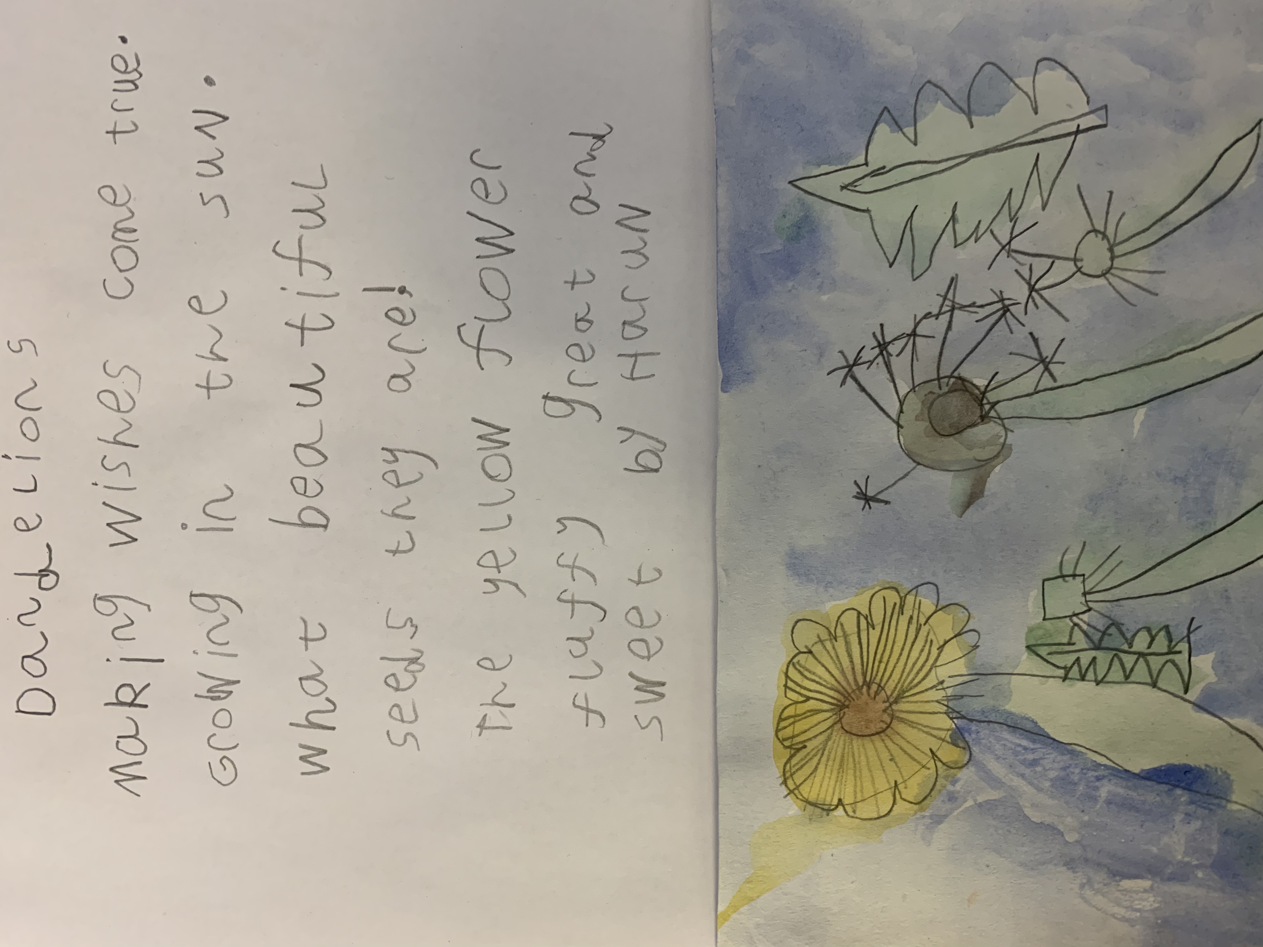 2RP have been working hard on writing poems about dandelions today and using watercolours to create pictures of them.